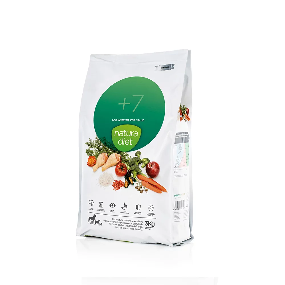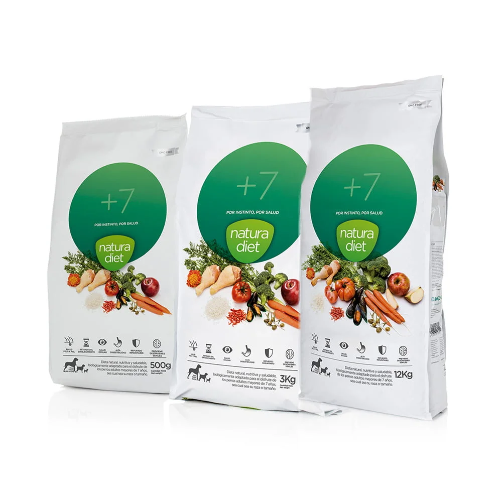 natura diet +7 verlangsamt die Alterung, schützt den Hund vor altersbedingten kognitiven Störungen und unterstützt die Gesundheit der Augen und das Immunsystem.