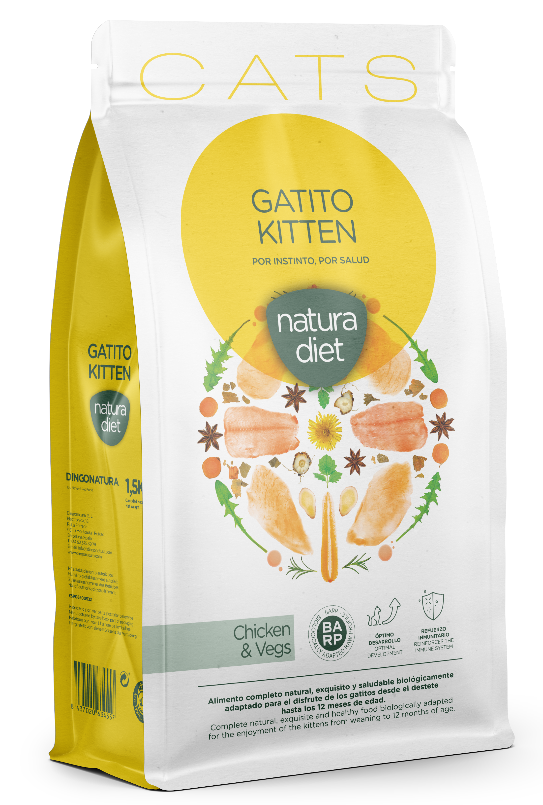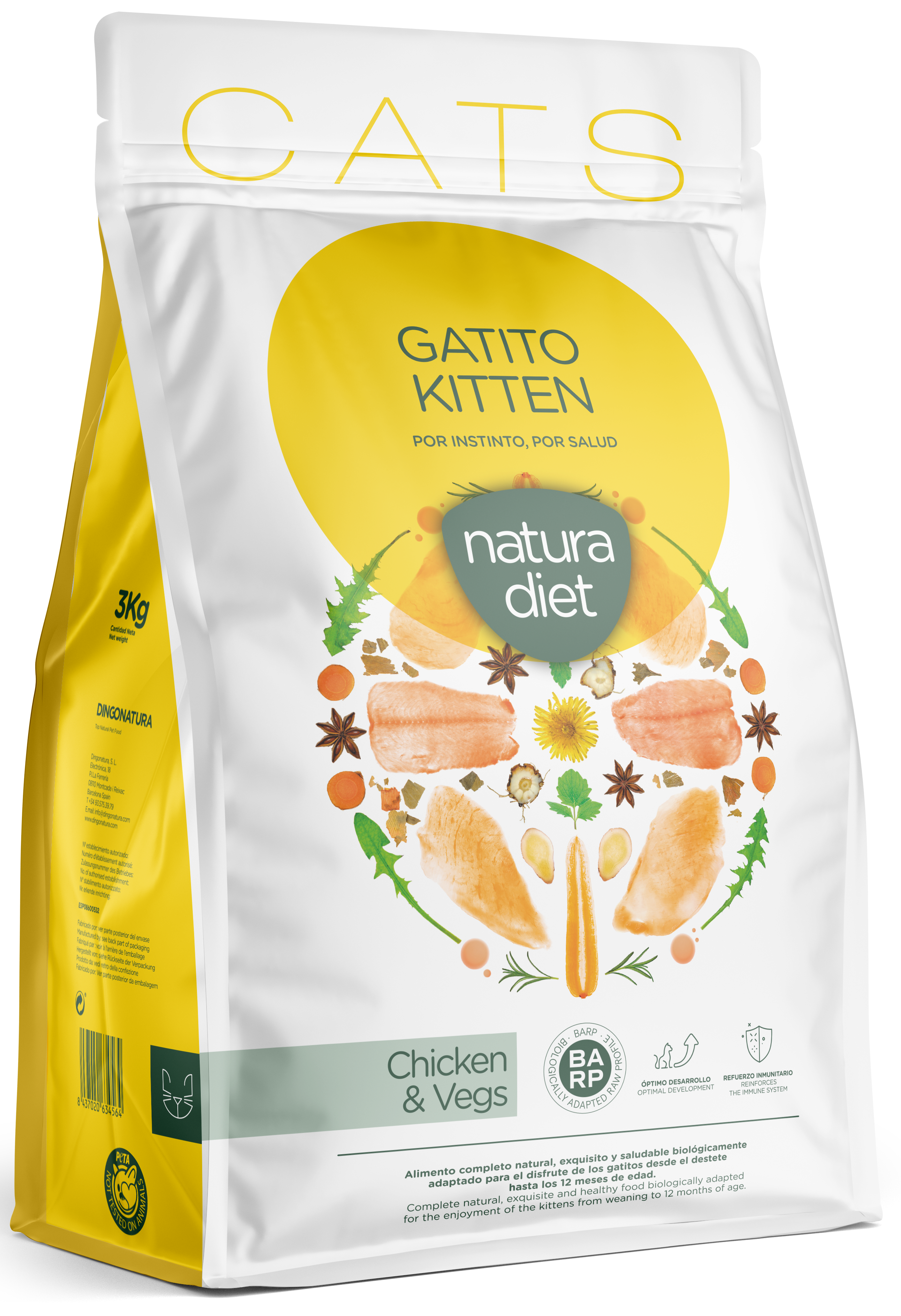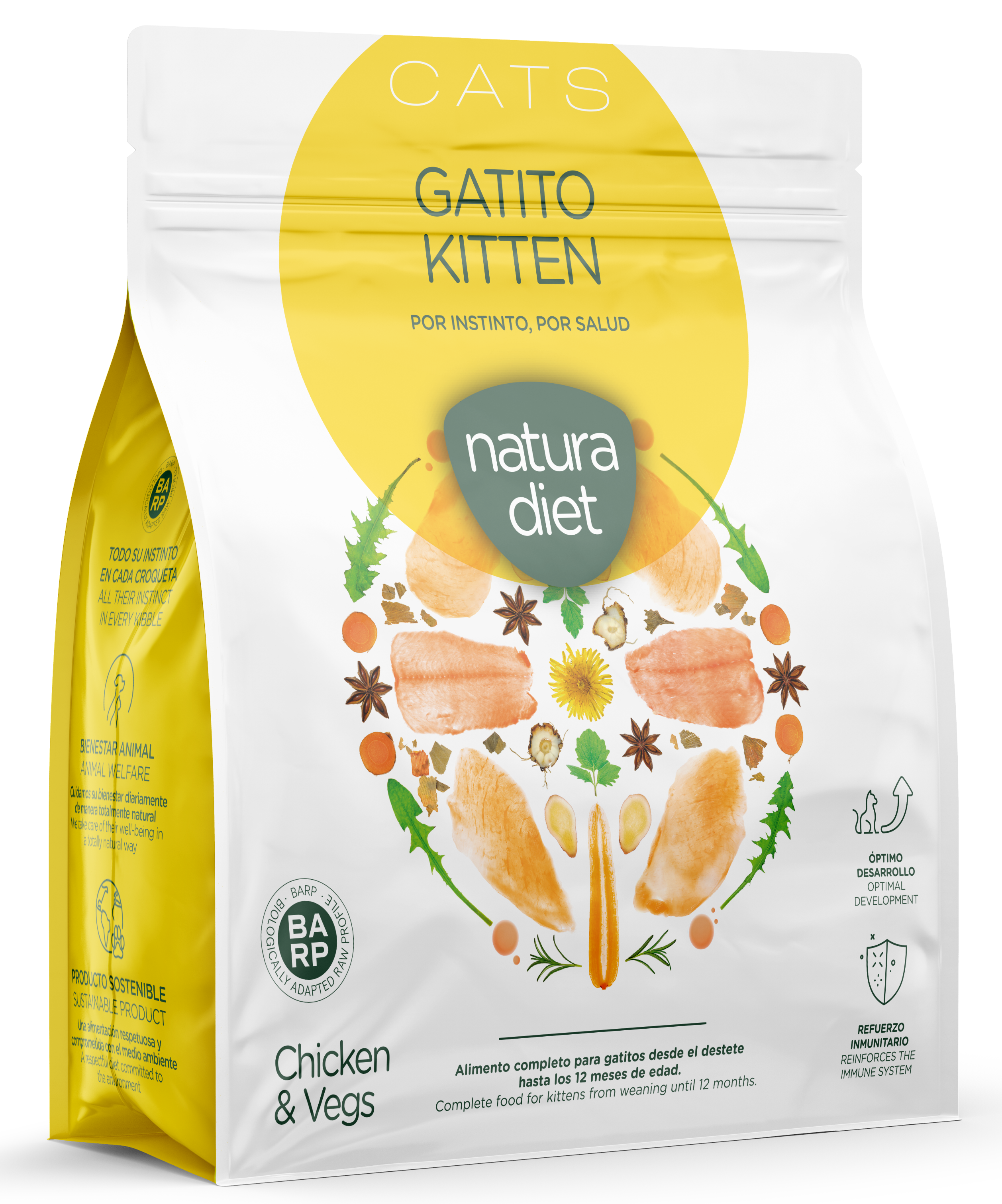 Natürliches, nahrhaftes und gesundes Alleinfuttermittel, das auf den Verzehr durch Katzenjungen vom Absetzen bis zum Alter von 12 Monaten abgestimmt ist.